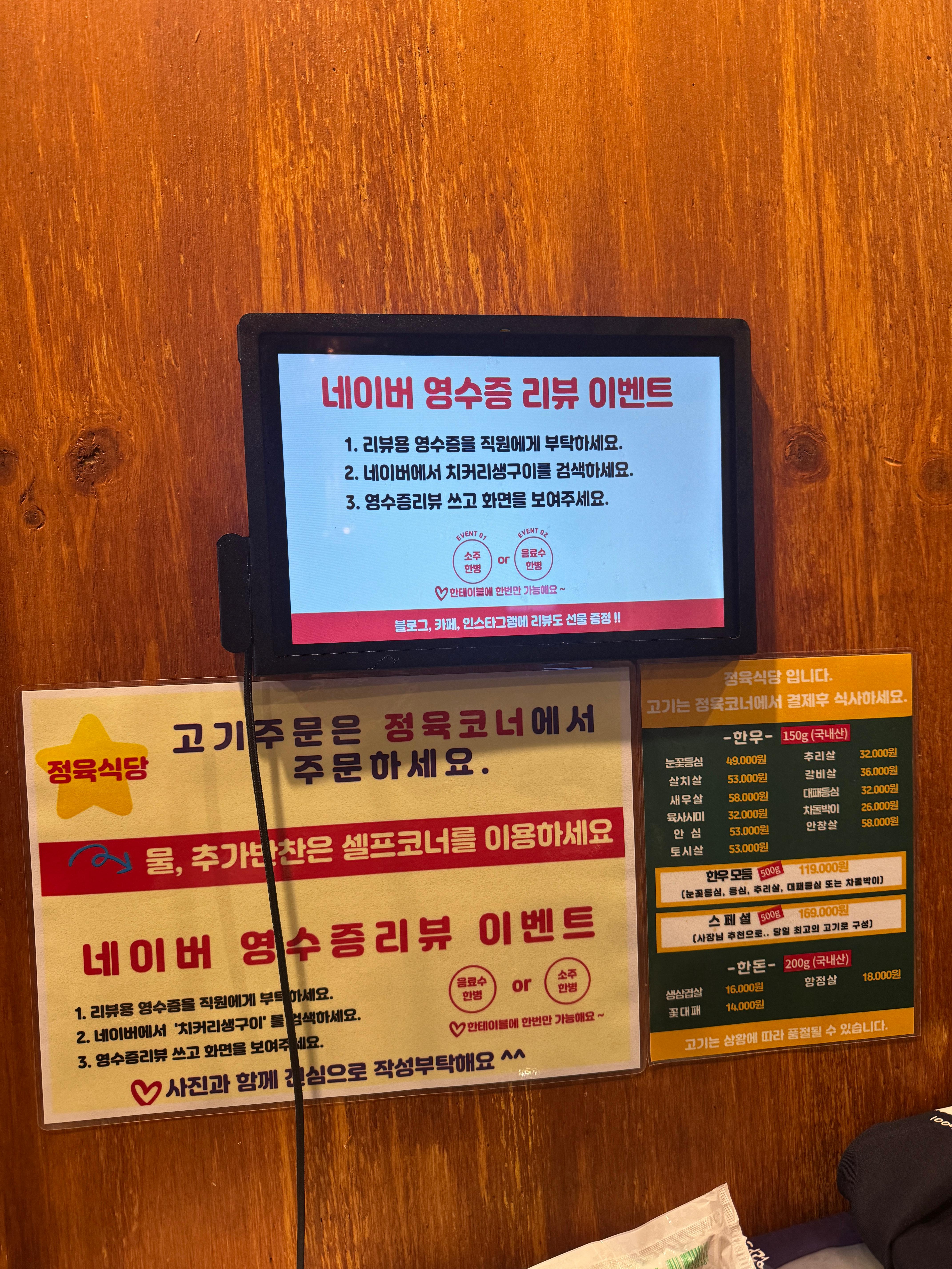 고기는 사장님께 정육코너에서 주문을 하면 되고 이외의 모든 것은 패드를 통해 주문하는 시스템이다.